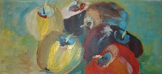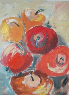 übermütige Äpfel / acryl auf carton ca. 15 x 40 cmund 30 x 40 cm
